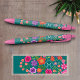 Trendy Teal Floral Pattern with Custom Monogram Black Ink Pen