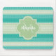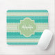 A trendy bright teal and lacy light green striped knit pattern mousepad. Personalise this stylish knitted design by adding your name and monogram. This is part of the Arcadia Knit Pattern With Nile Green Monogram Collection. Flat printed image, NOT made with knitted yarn or lace.