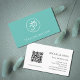 Yoga Instructor business card, with a white om symbol design with a trendy teal green background. With white and black lettering, you can add your own information. You also add your web address to the QR code field.Great for promoting your yoga studio or fitness business.