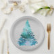 Trendy Teal Silver Glitter Tree Christmas Paper Plate