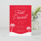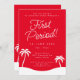 Another bold first period party invitation by JessicaAmber - ask about custom orders! This classy card features a red and white colour scheme. It is paired with clean lettering in sans serif and script fonts, laying out the girl's name, event, and details of the party, including the location, date and time. The stand-out features are the modern aesthetic, large headline, and palm trees at the bottom. Browse my collection for matching envelopes and stationery. A great piece of stationery for your daughter's big day. ••• Created 7 September 2023 ••• For more party suites, visit my store Zazzle.com/store/JessicaAmberArtist ••• For custom orders, contact me via Zazzle messaging