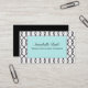 Wow others and show your class with your personal and trendy custom business cards that people won't forget they have in their wallet. Shown with classic tiffany blue banner with a thin silver grey banner on a black and white trendy patterned background.