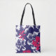 Trendy Tropical Abstract Blue Red Floral Pattern Tote Bag