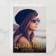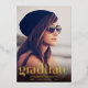 An elegant and stylish graduation announcement that features your grad's photo overlayed with "Graduate" written in a trendy large type in real gold foil and his or her name, school and class year. Add another photo and the party details on the back.