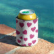 Trendy Valentine Pink Glitter Hearts on White Can Cooler