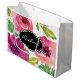 Vibrant shades of pink, purple and green in this custom watercolor floral gift bag. A decorative black monogram frame is used to contrast with the bright blossoms and add a touch of sophistication. Insert the name of your gift recipient in place of the sample name shown in the design template for a custom gift bag. To change the font, select the "customise it" button.