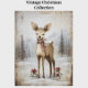 Trendy Watercolor Red White Vintage Reindeer Xmas Holiday Card