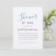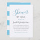 Trendy typography and a blue watercolor stripes a white tinted soft blue front baby shower by mail invitation. This modern invitation is a classy way to invite friends and family to shower the mother to be with gifts and loving thoughts from afar. Perfect for a baby boy.