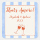 Trendy whimsical hand drawn wedding stickers. Easy to personalise names and year. Watercolor blue stripes with orange red border with typography in a hand drawn style.