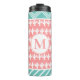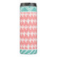 Trendy white cactus patterned tumbler cup with sea green and coral pink geometric designs.