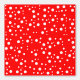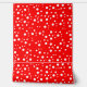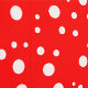 The white polka dots are large and scattered randomly across the bright red background, creating a visually striking pattern. The contrasting colours make the dots stand out, adding depth and dimension to the design.