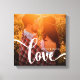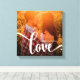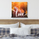 This stylish canvas print features the word "love" in modern and whimsical white text, with room for your names. Your favourite photo fills the background.