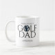 Trendy cool coffee mug featuring a prominent “WORLD’S BEST GOLF DAD” header in minimalist typography and a golfer silhouette embedded centrally in the text. Customisable text areas under headers. Perfect gift idea for your favourite golfer. Great for Christmas, Father’s Day, birthday or any day.