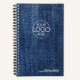 Classically styled notebook prominently featuring a business or personal logo over lightly worn blue denim image covers. Personalizable logo and name (or text lines). Trendy cool understated elegance. Stylish modern serif typography. Notebook with college ruled lines or options of sketch, grid, etc.Hard cover available. Contact for assistance in personalising or customising to your individual wishes.
