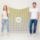 Trendy Yellow Grey Heart Gradient Pattern Monogram Fleece Blanket