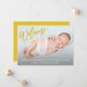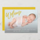 Trendy Yellow Welcome Script with Photo Baby Birth Announcement