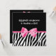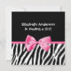 A trendy black and white zebra print baby shower invitation with a cute pink ribbon bow wrapped like a present. Personalise to invite your guests to attend. Flat printed image, not actual bow.