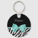 Trendy Zebra Print Aqua Mint Ribbon With Name Key Ring