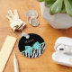 A trendy black and white zebra print keychain with a girly aqua mint ribbon tied into a cute bow. Personalise this chic and stylish animal print fashion accessory by adding your name to the custom text area. Flat printed image, not actual ribbon.