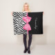 Trendy Zebra Print Chic Hot Pink Bow and Name Fleece Blanket