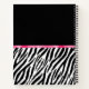 A trendy black and white zebra print standard size 8.5x11'' notebook decorated with a picture of a chic hot pink ribbon tied into a girly bow. Personalise this fashionable pink and black animal print design by adding the name of your favourite girl. Flat printed image, NOT actual bow.