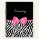 Trendy Zebra Print Chic Hot Pink Bow and Name Notebook