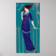 Tres Chic French fashion slogan with vintage art with a fashionable Parisian lady in a 1920s style blue dress against a customisable teal background. This is Art Deco period fashion style.