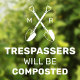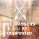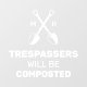 Modern humourus window decal "Trespassers will be composted" with crossed spades garden logo and custom initials in white. The adhesive film is attached to the inside of the glass surface, for example on a greenhouse door or the garden house window. This gardening sign is also a charming reminder to the family members to respect your private retreat. Further matching garden gift ideas for man can be found in the corresponding collection. For design wishes please message me. Much joy with it © y.BEE PAPERIE