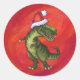 TRex Dino in Santa Hat on Red Classic Round Sticker
