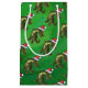 TRex in Santa Hat on Green Small Gift Bag