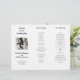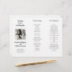 Ecru coloured, tri-fold wedding ceremony program with photo template which will show on the front. Fold this 8.5 x 11 inches paper into thirds, accordion like, and fill in three sections with the "order of the ceremony" and list the "wedding party" members. Also add "in memory of" and / or "thank you" to family and guests. Choose white, or another paper type, as you prefer.