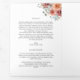 Welcome your guests with this gorgeous elegant tri-fold program with unique watercolor timeline and use of graceful modern calligraphy. Timeline with hand painted watercolor golden images with floral details matching flowers in the rest of the program. Hand painted watercolor flowers and foliage in a graceful mixture of in blush, dusty rose, ivory, peach, cloudy slate blue, grey and sage tones in all program pages. You can select customise and add your own details freely from editors screen, you can also move around timeline images and text to any order you may need. Design coordinating our "Ethereal" wedding and events collection.