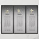 YOGA Meditation Instructor Studio / Elegant Yoga and Massage Therapy Studio Tri-Fold Brochures Template - Elegant White and Gold Foil Yoga Meditation Magical Root Chakra Symbol / Muladhara Chakra Symbol / Seed Mantra LAM Sanskrit Letter on Navy Blue Grunge Background.