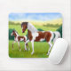 A tri paint mare and foal painting by equine artist Carolyn McFann printed on a quality computer mousepad for horse lovers.
