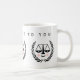 Funny lawyer mug featuring cartoon scales of justice and creative quote for your favourite trial lawyer or law school grad.