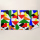 This beach towel has a Bauhaus design of a collage of triangles in red, yellow, orange, blue, and green.