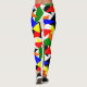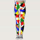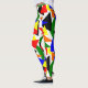 These leggings have a Bauhaus design of a collage of triangles in red, yellow, orange, blue, and green.