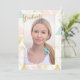 A modern photo invitation with triangle shapes in teal, gold, pink and white. (<a href='https://www.freepik.com/free-vector/wedding-invitation-card-template_3715120.htm'>Designed by Freepik</a>). <br/><br/>The card is easy to customise with your wording, font, font colour and choice of six paper types.<br/><br/>Not exactly what you're looking for? All our products can be custom designed to meet your needs at no extra charge.<br/><br/>Simply contact us at askcottonlamb@gmail.com<br/><br/>Coordinating products available: