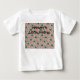 This baby t-shirt has a geometric design of repeating brown and tan triangles with turquoise circles on top on a field of off-white. Want the same design in different colours? Message me.
