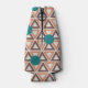 This bottle cooler has a geometric design of repeating brown and tan triangles with turquoise circles on top on a field of off-white. Want the same design in different colours? Message me.