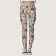 This leggings has a geometric design of repeating brown and tan triangles with turquoise circles on top on a field of off-white. Want the same design in different colours? Message me.