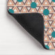 This mouse pad has a geometric design of repeating brown and tan triangles with turquoise circles on top on a field of off-white. Want the same design in different colours? Message me.