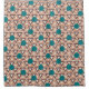 This shower curtain has a geometric design of repeating brown and tan triangles with turquoise circles on top on a field of off-white. Want the same design in different colours? Message me.