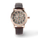 This women's watch has a geometric design of repeating brown and tan triangles with turquoise circles on top on a field of off-white. Want the same design in different colours? Message me.