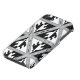 Black and white sea turtle facing downward in a black and white triangle. Simple half black, half white sea turtle design. Multiple triangles against grey patterned background.