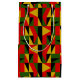 This gift bag has a Black History design of triangles and rectangles in gold, red, green, and black making a pattern.