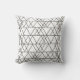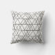 This throw pillow has a mid-century modern design of white triangles running horizontally made with black lines.