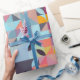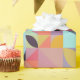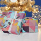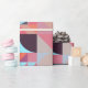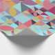 Abstract geometric pattern composed of triangles, petals and quarters in soft colours on a light blue background.