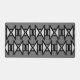 A modern geometric design of black triangles and black rectangles on medium grey background. Version 2.