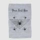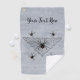 This golf towel is white with a painted look with a black triangular spider web with black widow spiders that have the red hourglass markings. Customise your text with the template.